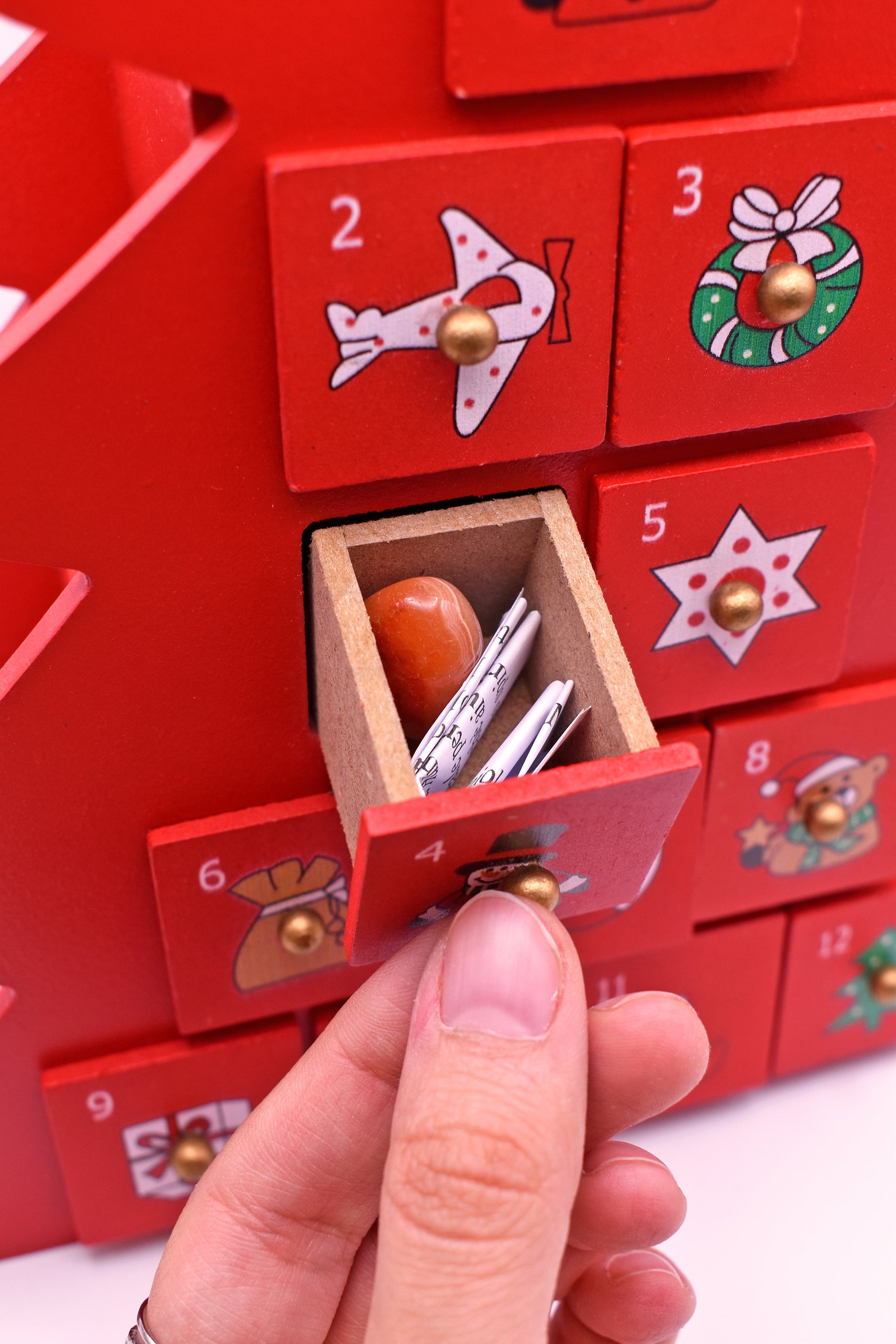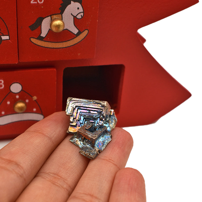 Calendario in legno - Due disponibili. Uno completo rosso e uno rosso rimasto con casellina mancante del 24 dicembre. Possiamo inoltrare foto in privato. Mancando la casellina abbiamo inserito un Bismuto, come pietra di importo superiore (15,99€)